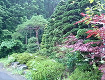 写真手前のコノテガシワは綺麗に刈り込み、モミジは光が差し込むように透かしております。